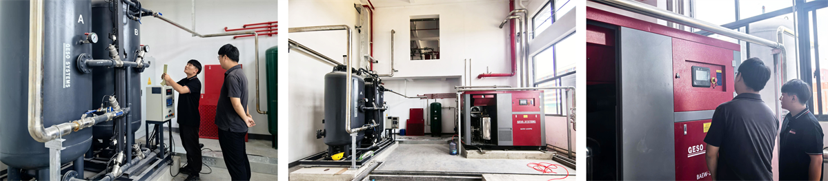 在当今人工智能技术中爆炸性增长的时代,AI机器人正在加速其进入医疗保健,制造和物联网(IoT)等关键领域的渗透。作为支持精确制造的核心基础设施,稳定,有效的空气供应系统直接决定了智能设备和产品收益率的可靠性。 AI机器人领域的一家领先的国内企业对压缩空气系统的清洁度,稳定性和智能管理在微型医学机器人和智能物联网设备的研究和生产中设定了极高的要求。 Relying on its deep expertise in the compressed air field, the GESO technical team has tailor-made a golden combination solution for the enterprise, consisting of the oil-free water-lubricated air compressor BAEW-110APM, the adsorption nitrogen generator GNS180-99.99, and a precision post-processing system, empowering intelligent manufacturing with innovative technology.
